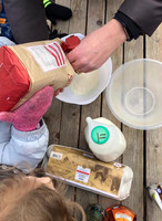 We measured and mixed the ingredients and made the most perfect pancakes. They tasted even better being eaten outdoors next to a fire!